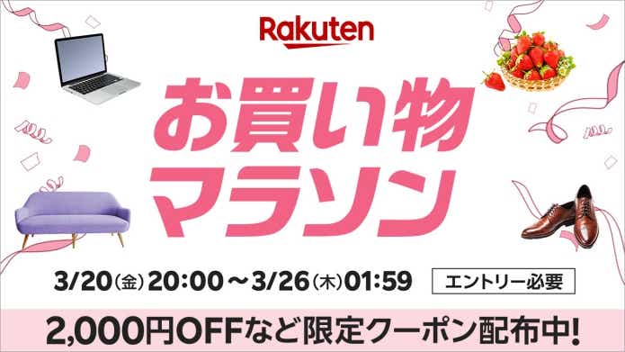 楽天市場では、3月20日(金)20時から3月26日(木)1時59分まで『お買い物マラソン』を開催!