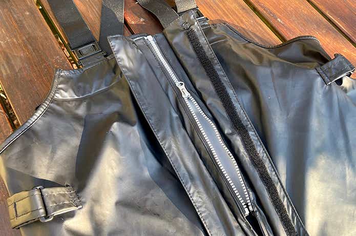 「漁師カッパ」といった表現がしっくりくる、防水性の高さを感じさせる見た目です。