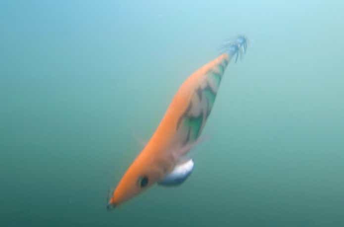 じつはアオリイカは、エギが着底した後もしばらくエギと睨めっこしていることがあります。