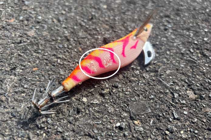 油断していると、気づかないうちに抱かれ、エギに噛み跡だけ残されることもあります。