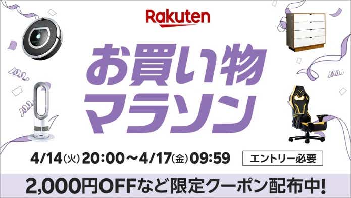 楽天市場では、4月14日(火)20時から4月17日(金)9時59分まで『お買い物マラソン』を開催!