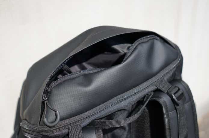 メインコンパートメントを大きく開けるファスナーに加えて、サイドからアクセスできるファスナーも搭載。上からだけでなく、横からも中身を取り出せる構造になっているんです。