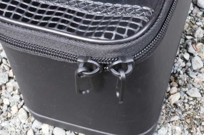 このギアバッグ、樹脂製ジッパーを採用しています。