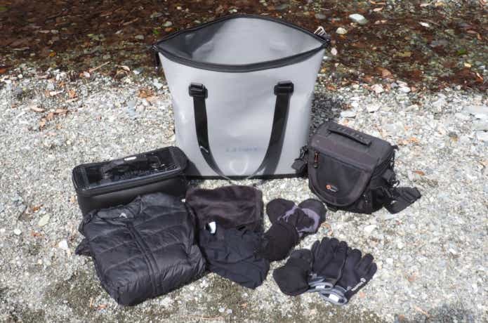 おかっぱりやボートの釣りの時には、防寒用のダウンジャケットやソックス、グローブ、ネックウォーマー、さらにはギアバッグやカメラバッグなどを入れていきますが、
