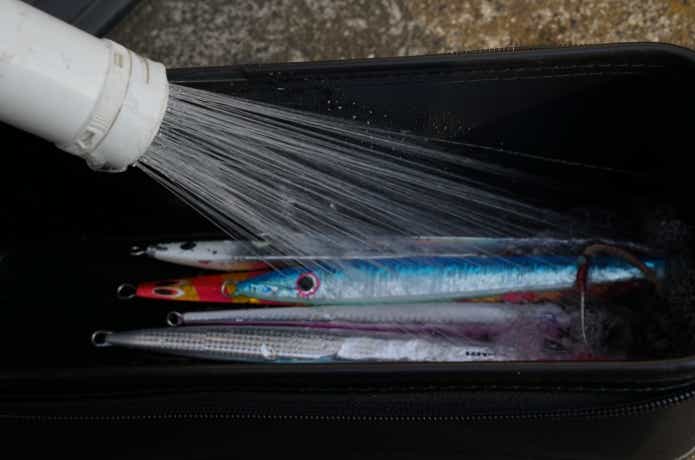 使用後に塩抜きしたいときは、そのままザブンとバケツに張った水道水につけるだけ。