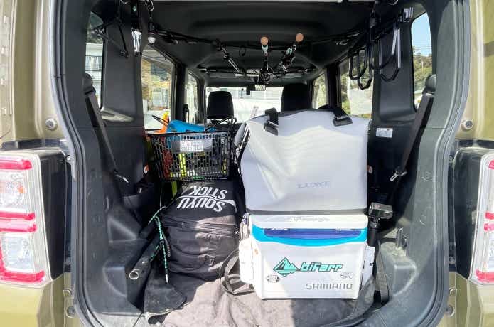 僕は車で釣りに行く際、様々なシチュエーションを想定して釣り具を大量に積み込むんですが、そんな時に起こりがちなのが、荷物を引っ張り出すときに荷物同士が引っかかって落下や破損に繋がるパターン。