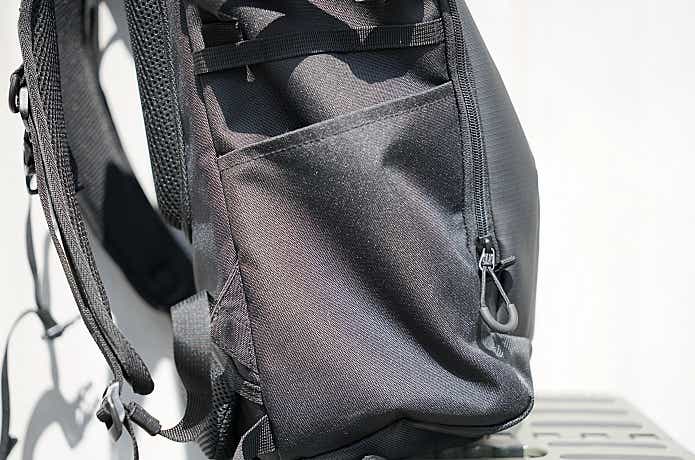 このサイドポケットがメッシュ地ではなく、頑丈な生地で覆われているという点です。