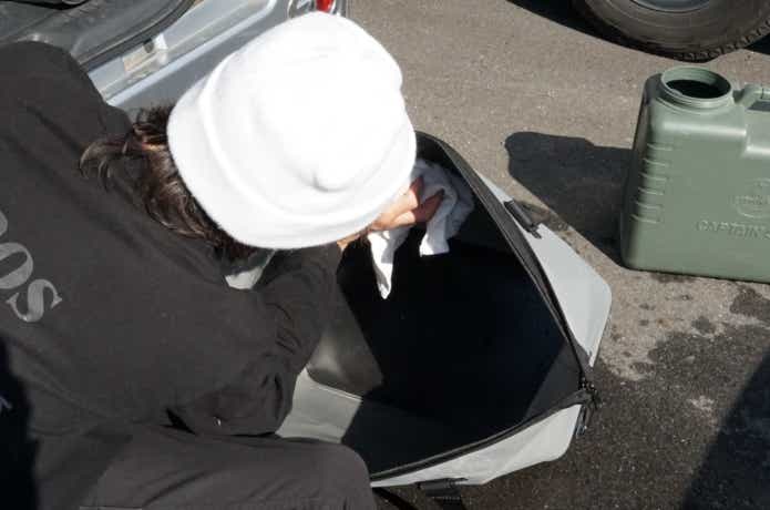 濡れ物を入れすぎて、バッグ内に水たまりができてしまったりするのですが、バッグ外へ水が漏れ出すこともなく、防水性はかなり高い印象。