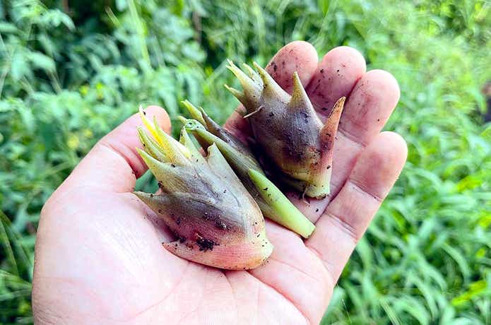 ミョウガもホームセンターなどで地下茎(球根)を購入して植えます。