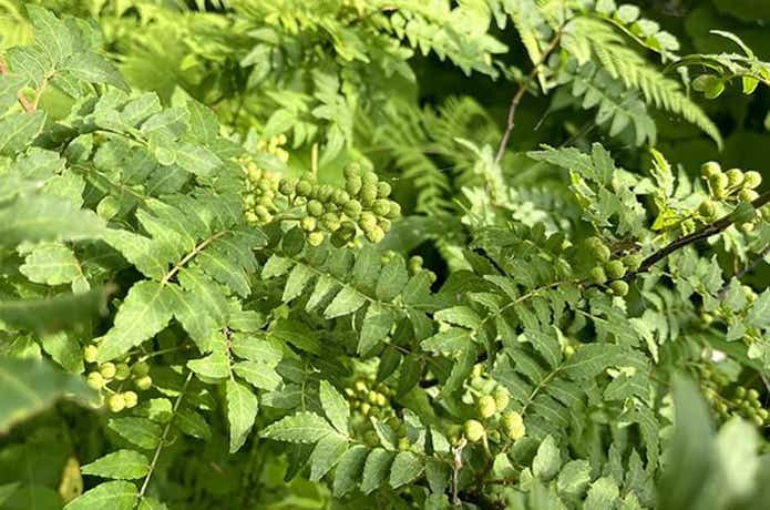 サンショウの植え付け時期は12〜3月。春に新芽、7月頃に実山椒、9月頃に熟した実が収穫できます。