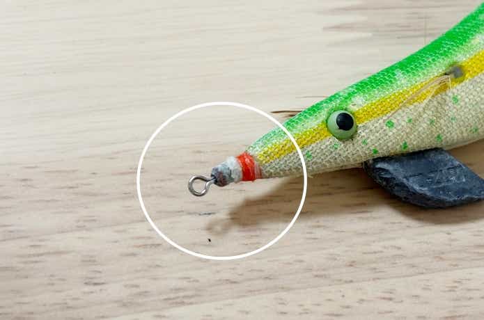 現代のエギでは見慣れない、スイベルタイプのアイが採用されています。