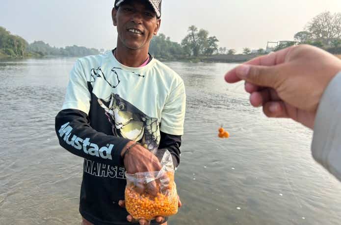 釣り餌は、穀物の一種であるシコクビエの粉末を練ったもので、現地では「ラギ」と呼ばれています。