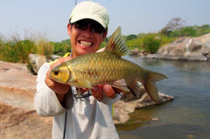 ターゲットは、オレンジフィンマシール。最大50kg以上に成長し、強い肉食性を示す大型のコイ科魚類です。