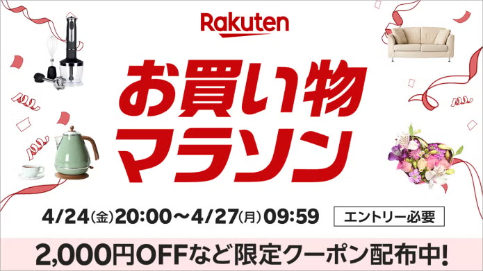 楽天市場では、4月24日(金)20時から4月27日(月)9時59分まで『お買い物マラソン』を開催!