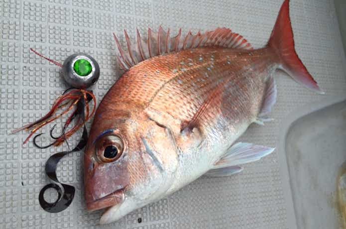 オモリにラバーやスカートが装着された疑似餌を使った釣り方が鯛ラバ。底まで沈めて一定速度で巻き上げてくるだけで鯛ラバが勝手にアピールしてくれて、マダイが喰い付いてくる手軽な釣り方です。鯛ラバの釣りではマダイはもちろんのこと、根魚や青物など他の魚も釣れるので初心者の方にもおすすめの釣り方です。