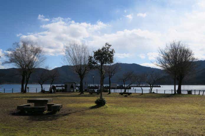 余呉湖の西側にあるビジターセンターの近くにある桟橋です。沖に長く伸びた桟橋の定員は約5~600名と大規模。駐車場も200台収容可能となっています。桟橋の周りは水深3mの浅いフラットなエリアとなっています。家族連れや初めての方などは、場所に余裕があるこちらの桟橋を利用するのがおすすめです。