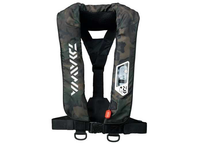 国土交通省基準対応(桜マーク・TypeA)の自動膨張式ライフジャケット。立体裁断設計で首周りにしっかりフィット。