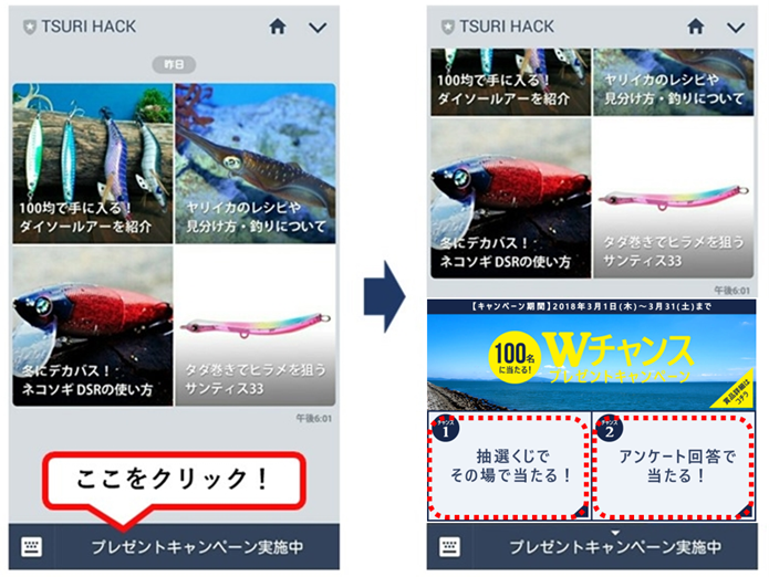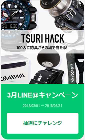 TSURI HACKのLINE@友だち限定プレゼントキャンペーン開催中!今月は、LINE@友だち限定で、釣具がなんと合計100名様に当たるプレゼントキャンペーンを開催いたします!今回は1人2回の抽選チャンス!