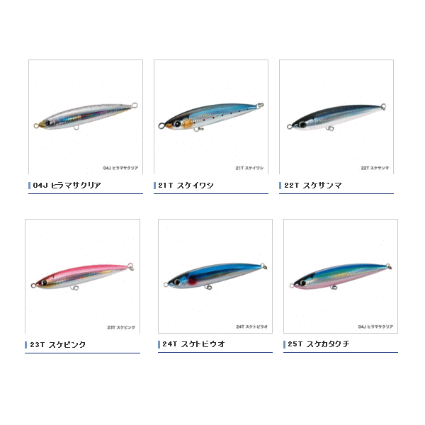 カーペンター社「GTγ(ジーティーガンマ)」などに代表されるルアーです。キャスト後、ロッドワークでルアーをジャークし、水面、もしくは水面直下を泳がせます。ジャークしきったら糸ふけを巻き取ります。ジャークの長さ、ポーズの時間など状況に合わせてアクションを使い分けていきます。