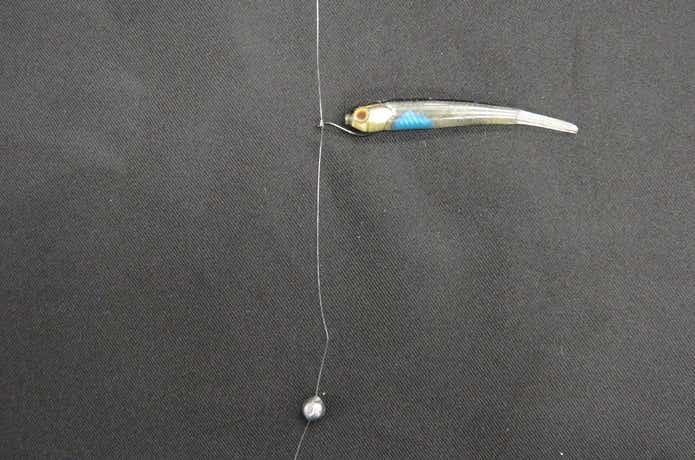 オフセットフックにガン玉をセッティングしたスプリットショットリグでもエビシャッドの特徴を生かす事ができます。リグの基本構造としてはヘビキャロとほぼ同じであるため、ライトタックルで繊細に扱う事ができるキャロライナリグ、と考えればエビシャッドとの相性が抜群のリグと言えるでしょう。
