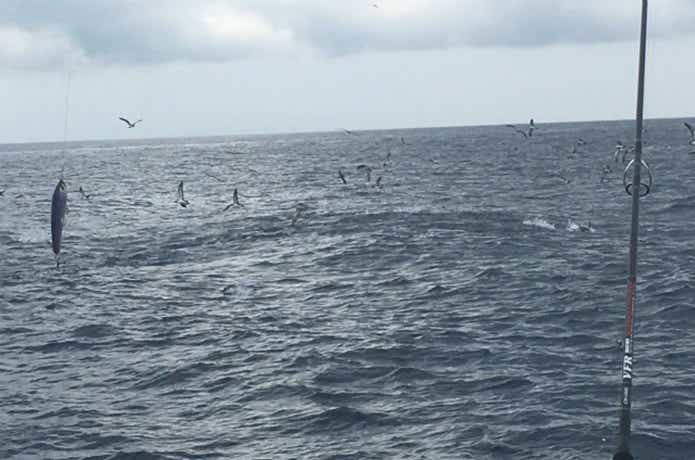 東を見て!たくさんの鳥が飛んでいます!あれが“ナブラ”ですか?