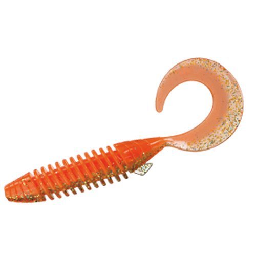 グラブ系ワームとは、ボディにカールした薄いテールを持ったワーム。リトリーブによる水流をうけることにより、カールしたテールが魚の尾びれのようになびきます。