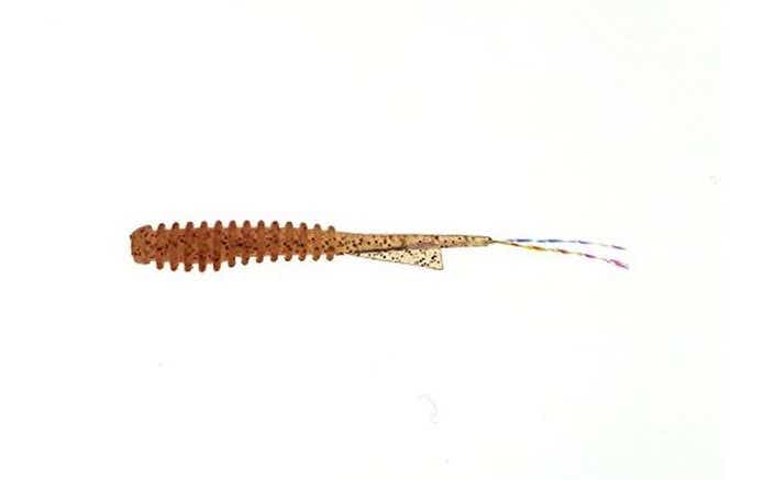 柔らかボディに極薄の長いテールがついたアジ・メバル、両方対応のワームです。アジが吸い込んでも、フッキングの邪魔にならない絶妙な設計です。