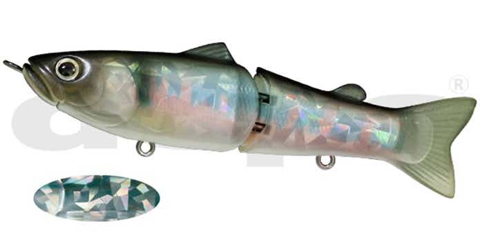 スライドスイマーシリーズ最大の特徴であるソフトシェルボディも、スライドスイマー115に受け継がれています。視覚、波動的のナチュラルさへ貢献しているのは当然ですが、フロントボディコア後方部よりもソフトシェルが張り出しているため、ジョイントの硬質的な音を抑えかつ、後ろのボディを弾性で押し出して魚にアピールが可能です。
