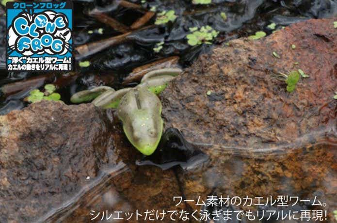 クローンフロッグはワーム素材で作られたリアルなアクションが魅力のカエルルアー。スピニングタックルでも扱いやすく、価格も非常に安価であるため誰でも手軽にフロッグゲームが楽しめる新感覚のルアーです。フロッグゲームにはじめて挑戦する方はもちろん、ルアーローテーションの中の秘密兵器としてぜひ活用してみてくださいね!