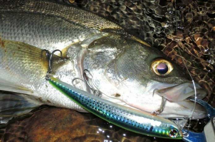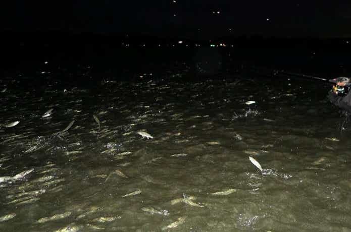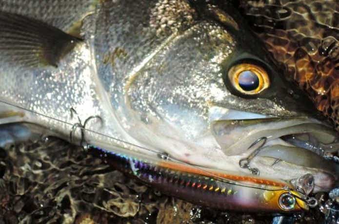 イナッコパターンは意外と難易度が高め。シーバスがルアーを見切る事が多い状況です。フランキーで流れのヨレや変化を見つけ出し、イナッコがライズしているキワや地形変化している場所を攻めてみて下さい。可変アクションと食わせの間が巻くだけで演出できるので、イナッコを狙っているシーバスの捕食スイッチをONにする事が可能です。