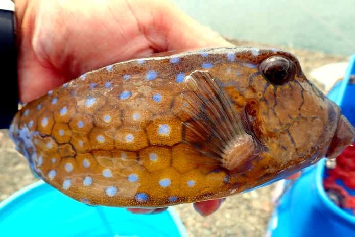 皆さんも、堤防釣りをしていてハコフグが現れたら釣り上げてみてはいかがでしょうか。くれぐれも触れ合った後は、しっかり手を洗って粘液を洗い流してくださいね!