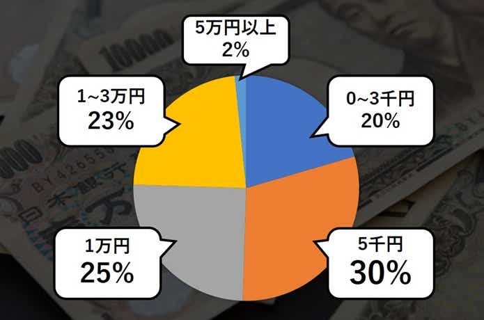 次いで1~3万円という回答が25%となりました。釣行回数が多く所持するタックルも多い場合、その分お金をかける必要が出てきますよね。新製品や良いものに手を伸ばしていくとなると、そのくらいの金額になるかもしれません。