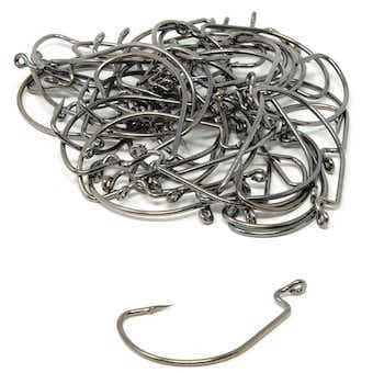 スーパースティックカーリーはテキサスリグやヘビキャロで使用するオフセットフック専用のスリット搭載。フックのセッティングが簡単にできることはもちろん、カバーがきついフィールドでも快適に扱える仕様です。オフセットフックを選ぶ際はボディに対してやや小さめの1/0から2/0のサイズがおすすめです。