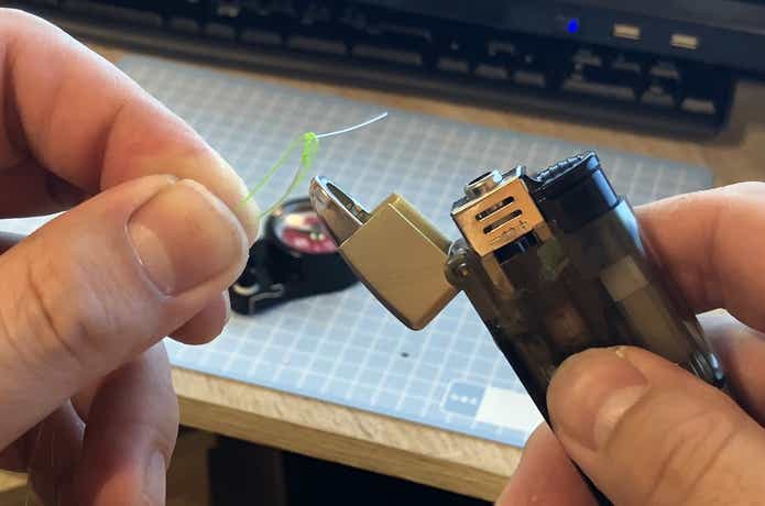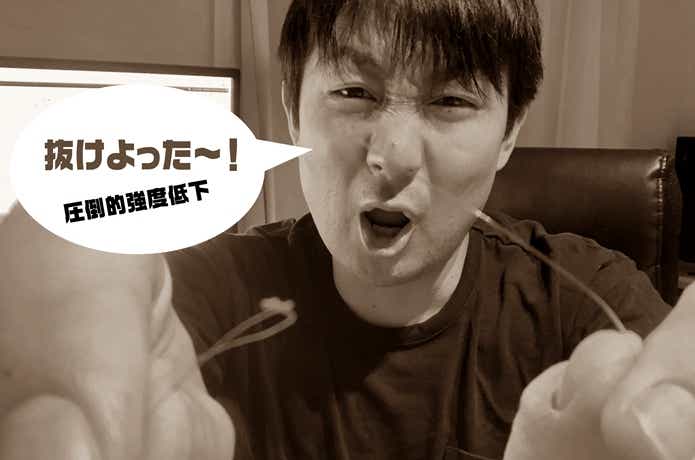強度テスト中、数回やってしまったのがライターで焼きコブを作る際に発生していたPEライン側へのダメージ。