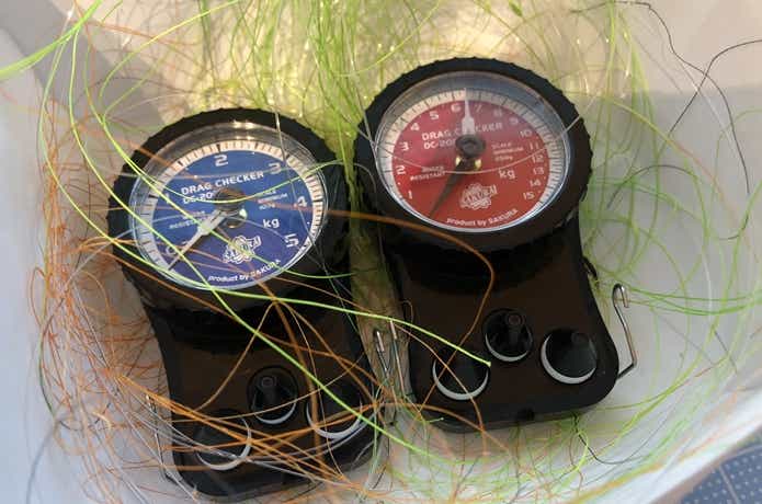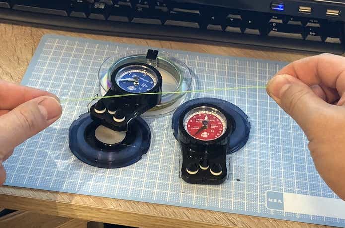 今回のテストは『エギング仕様のPE0.6×フロロ10ポンド』・『ライトジギング使用 PE2.0×フロロ20ポンド』の2種類で実施します。