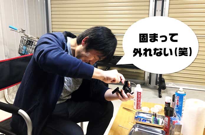 何とかパーツを分解したあとクリーナーで洗浄し、回転性能重視のオイルを塗布しました。