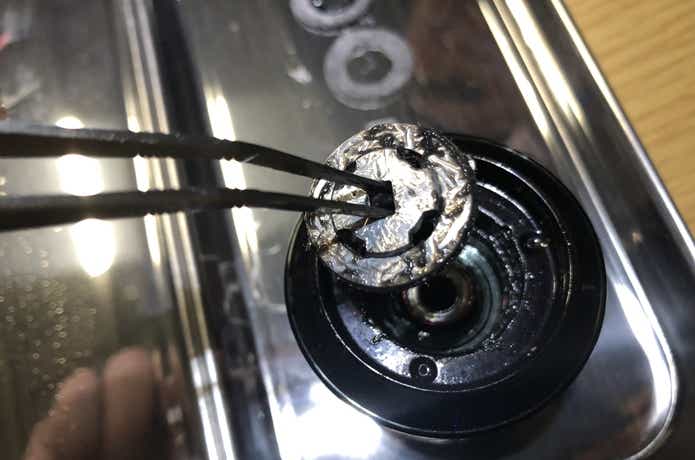 巻き心地はゴロゴロし、内部のグリスが無くなっていました。