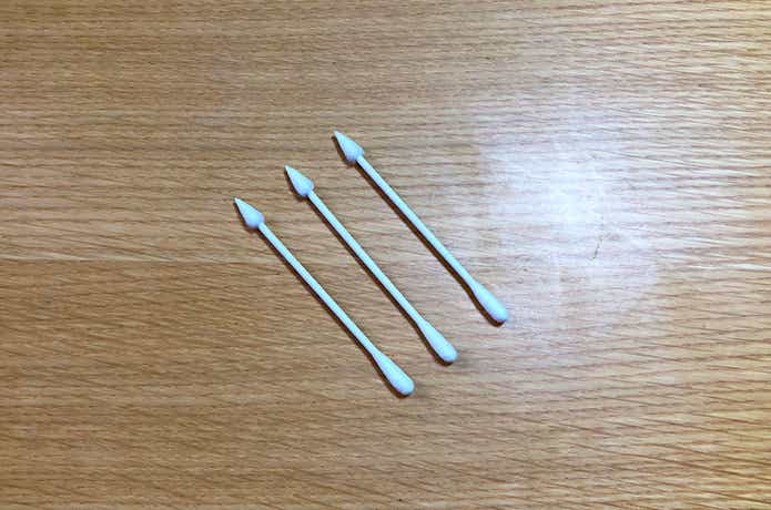 普通の綿棒でも問題はありませんが、先が尖っているものが便利。100均などでメイク用綿棒として販売されています。