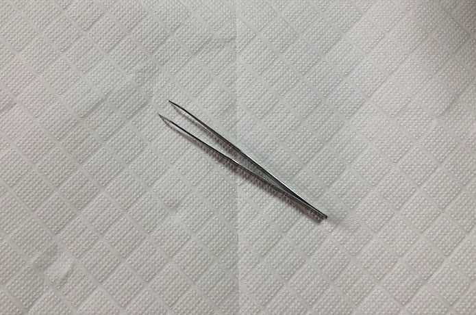 普通のピンセットでも使えますが、先曲がりタイプのものがおすすめです。