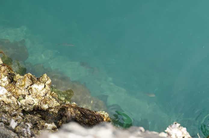 まず初めに集魚効果を確認するため、ベイトフィッシュとなる小魚が見える足元にシュールストレミングの漬け汁を垂らしてみました。