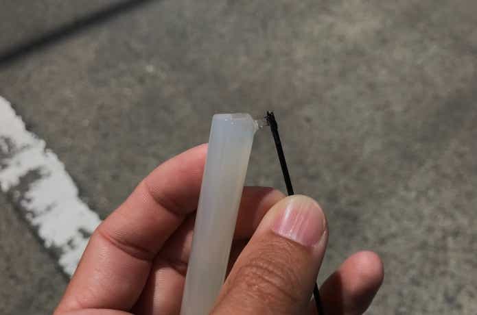 ホットグルーがはみ出ているので、固まってから指でポリポリ取り除いてください。