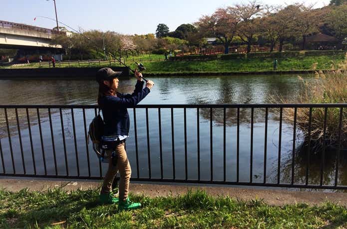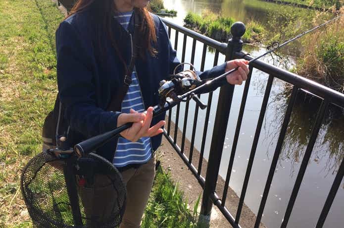 リールとバッドエンドガイドの間を持つ手は、ラインを一緒に持つようにしてください。ぎゅっと握るというよりも、親指と人差し指で輪を作るようなイメージです。