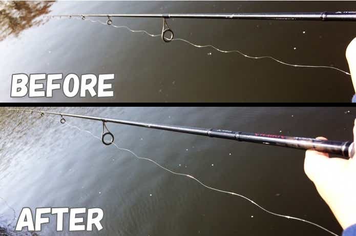 ビフォーアフターを見比べてみると、僅かに糸ヨレが解消しているようです。筆者の場合、フロロラインの糸ヨレを放置していたため、癖が付いてしまっているのが否めません。