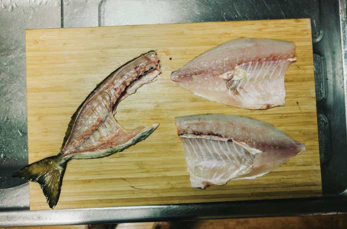 トゲを取り、内臓をキレイに取り除いてやったら、後は他の魚と同じ。三枚おろしにしていきます。