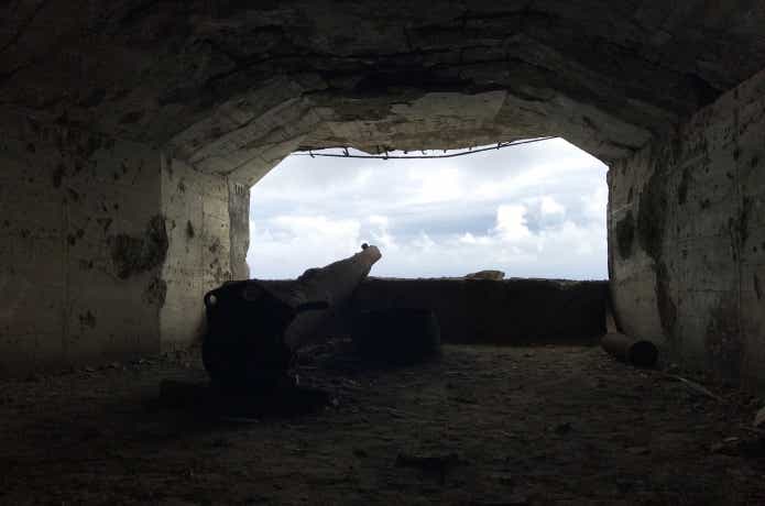太平洋戦争時に実際に使われていた大砲と砲台跡が今でもそのまま残っています。