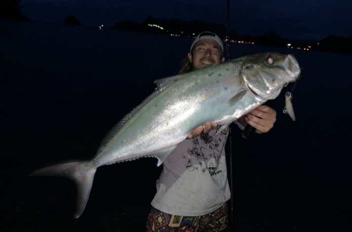 日が沈みかけたタイミング。同行者のルアーを襲ったのは、まさかの80センチオーバーのビッグカンパチ!