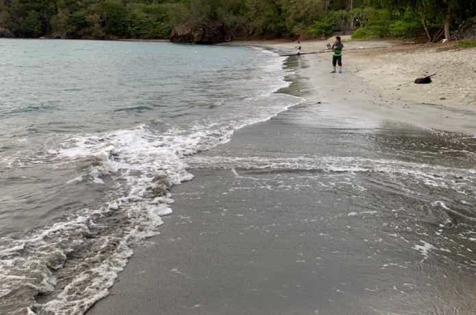 ふと覗いてみると、入り江になっている静かなビーチに大量のベイトが接岸しているのを発見。