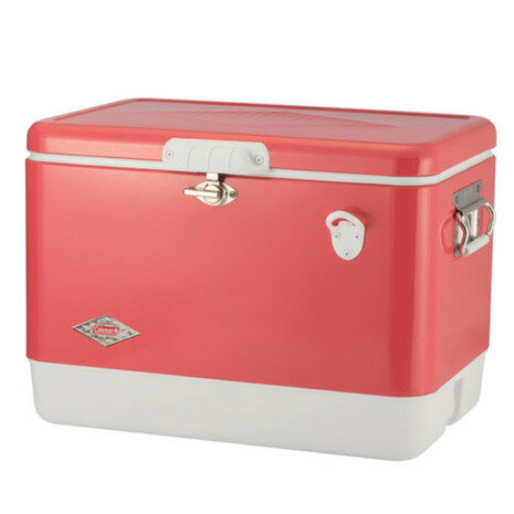54QT スチールベルトクーラーのコールマン60周年記念デザインモデルです。蓋上部にはダイヤモンドエンボス、正面にはビンの蓋を開けるのに便利なボトルオープナーも。見た目のおしゃれさと機能性を併せ持った製品となっています。カラー:全4色