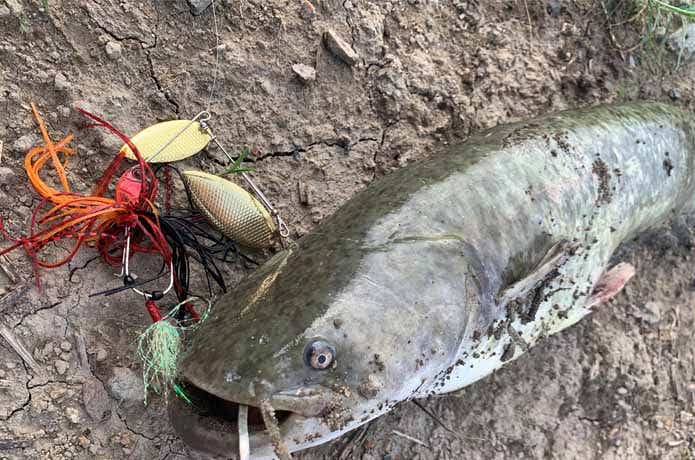 グンッと重たくなるバイト! に、期待しましたがナマズ……。