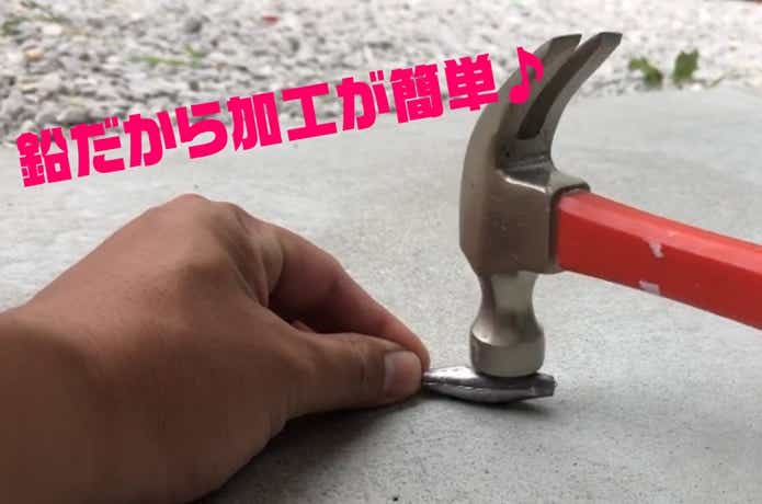 といわけで、ハンマーでオモリを変形させ、扁平形へトランスフォームさせようと思います。